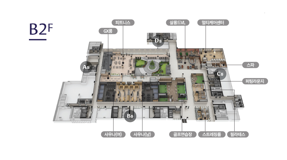 피트니스ㅣGX룸ㅣ사우나ㅣ골프연습장ㅣ스트레칭룸ㅣ필라테스ㅣ퍼팅라운지ㅣ스파멀티케어센터ㅣ살롱드VL